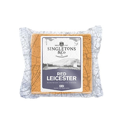 Enjoy the rich, slightly tangy taste of Singletons Red Leicester. Made with care using traditional methods, this classic cheese has a smooth, creamy texture and a lovely orange hue that adds a splash of colour to any plate.